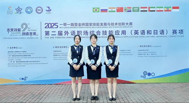 11月2日,2025“一帶一路”暨金磚國(guó)家技能發(fā)展與技術(shù)創(chuàng)新大賽第二屆外語(yǔ)職場(chǎng)綜合技能應(yīng)用(英語(yǔ)和日語(yǔ))賽項(xiàng)全國(guó)總決賽在天津商務(wù)職業(yè)學(xué)院圓滿(mǎn)落幕。由廣州市財(cái)經(jīng)商貿(mào)職業(yè)學(xué)校涉外貿(mào)易系2023級(jí)商務(wù)日語(yǔ)2班陳雅詩(shī)、丁海梅、徐曉琪三位同學(xué)組成的參賽團(tuán)隊(duì),憑借出色發(fā)揮,從全國(guó)27個(gè)省市自治區(qū)、71所院校的強(qiáng)勁對(duì)手中脫穎而出,斬獲全國(guó)總決賽二等獎(jiǎng)。